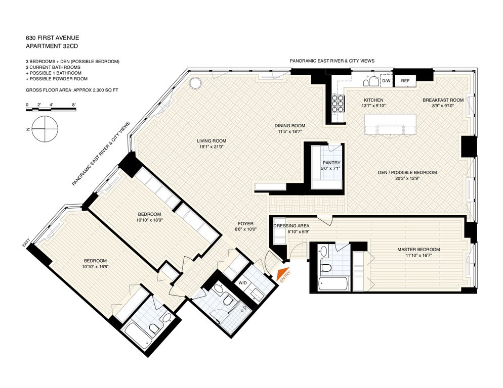 Floorplan For 3 Bedroom Apartment At 30 Sutton Place Apartment Floor Plans Floor Plans House Floor Plans