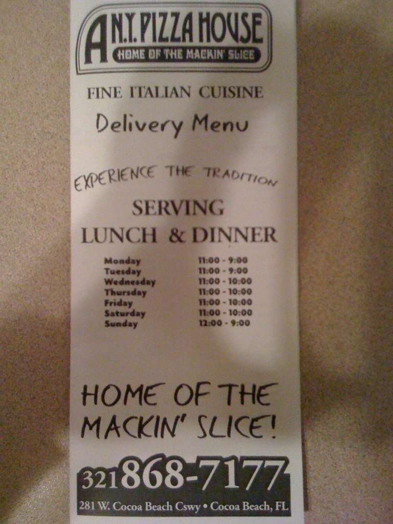 A N Y Pizza House Cocoa Beach Menu Prices Restaurant www.tripadvisor.com