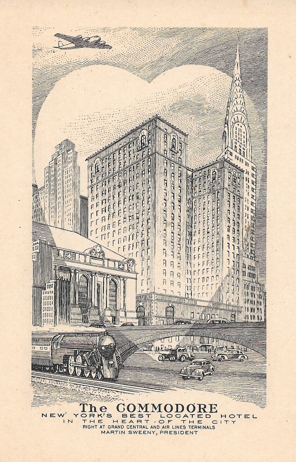 20th century limited vintage new york central rail postcard. New york city skyline deco style travel poster style repro vintage postcard z802781.