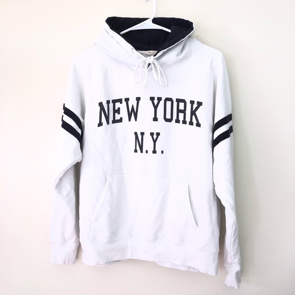 Brandy Melville White Oversize Christy New York Hoodie Sweatshirt