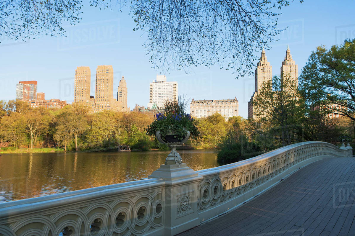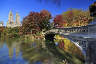 Scenic Bow Bridge In Central Park New York City With Colorful