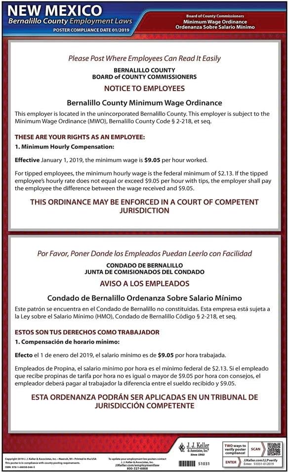 Amazon Com New Mexico Bernalillo County Minimum Wage Poster