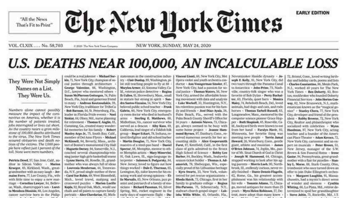 The New York Times Devotes Sunday Front Page To List Of Covid 19 Dead Deadline