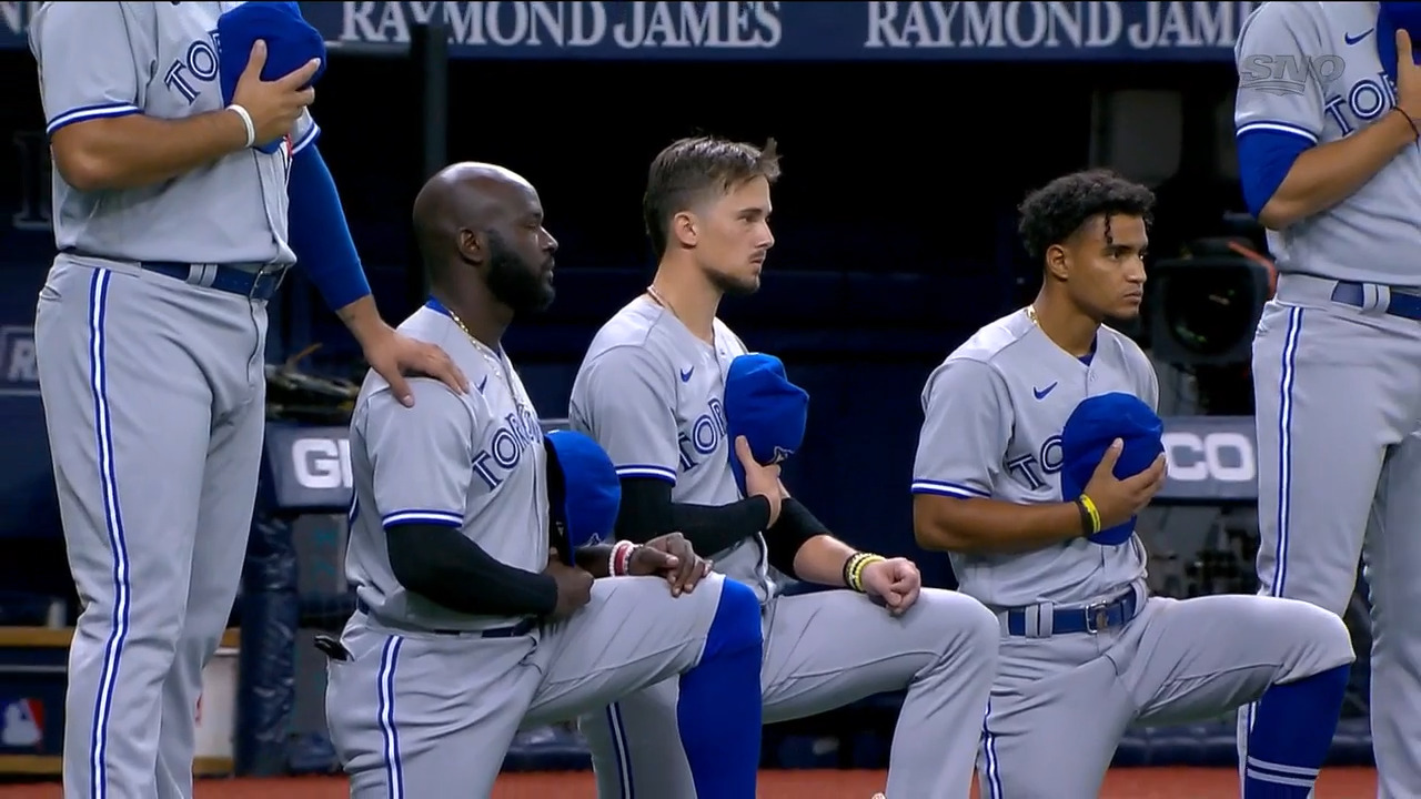 Mookie Betts Kneels During National Anthem Before 1st Game With