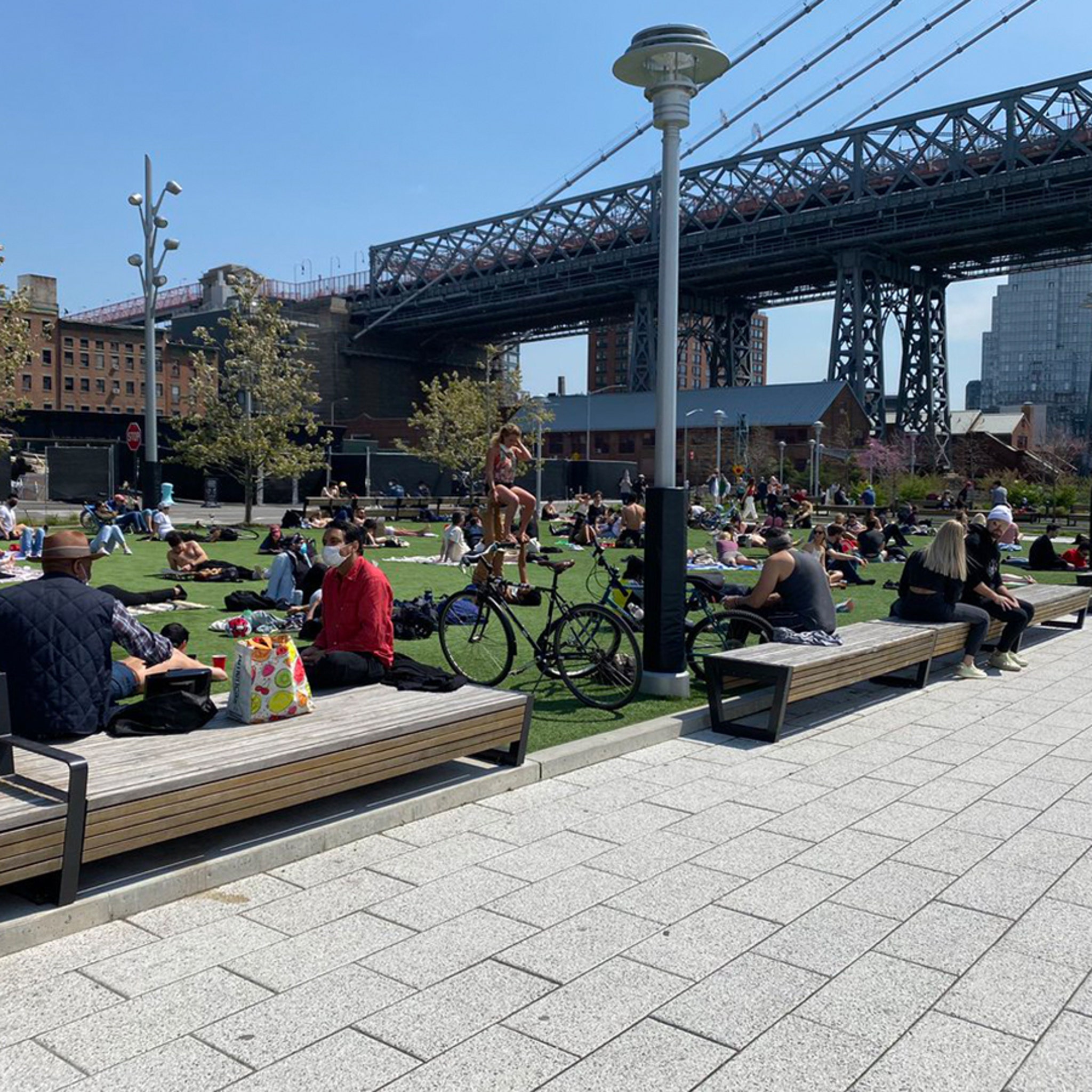 Social Distancing Circles Added To Domino Park Lawn