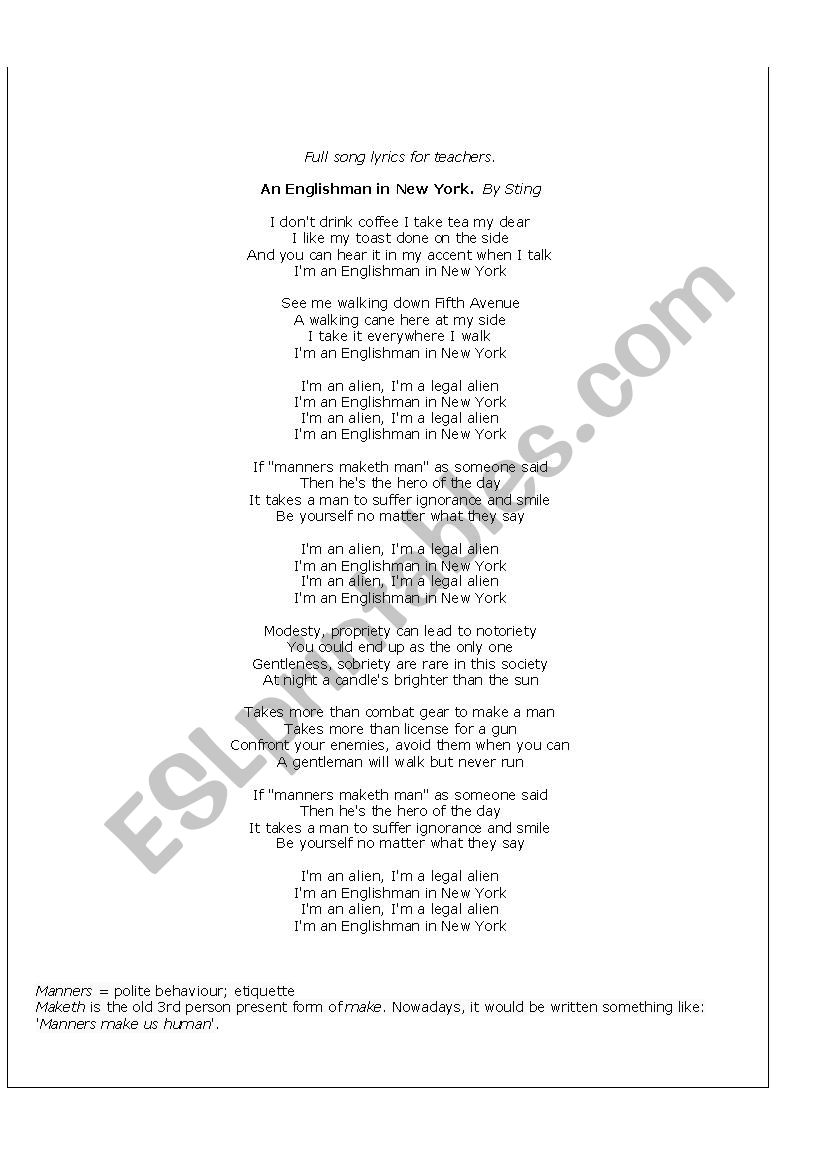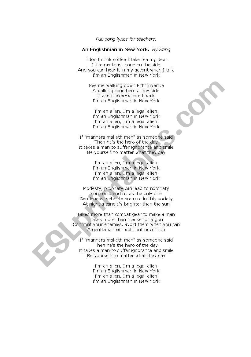 Sting Englishman In New York Edit Lyrics Youtube