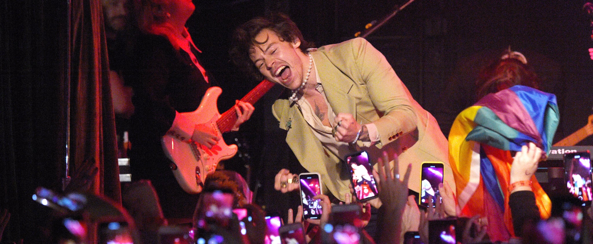 Harry Styles Wears A Pearl Necklace And Sports Red And Black Nail Varnish At La Event Daily Mail Online
