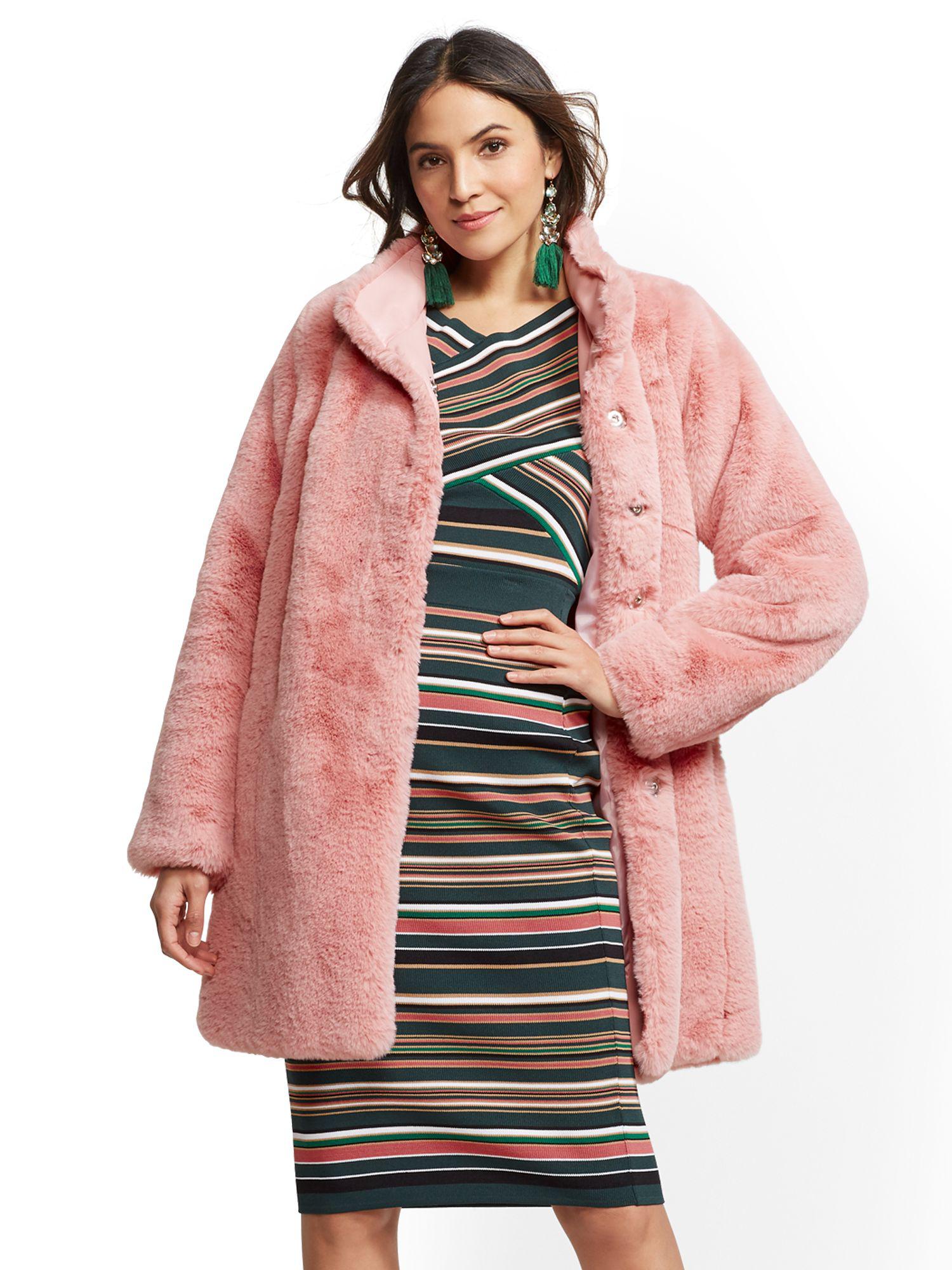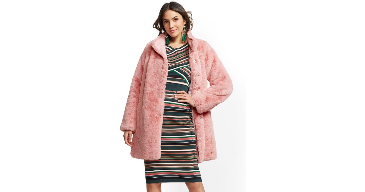 New York Company Faux Fur Coat In Pink Lyst www.lyst.com