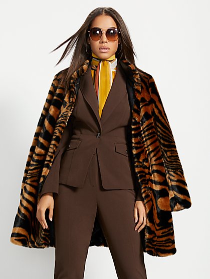 New York Company Zebra Stripe Faux Fur Coat In Black www.nyandcompanycloset.com