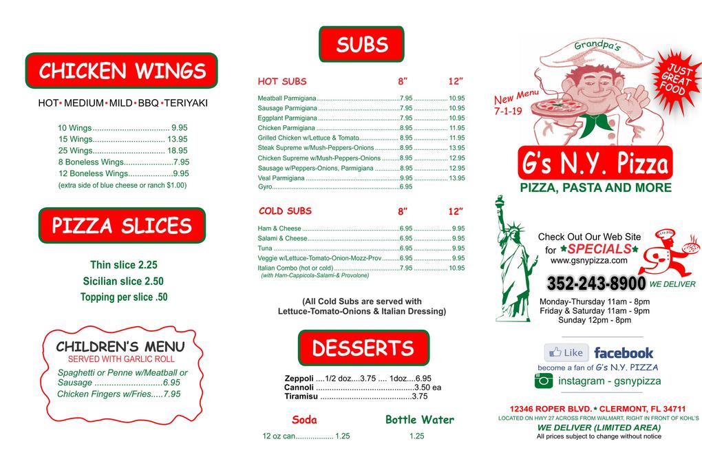 G S New York Pizza Home Clermont Florida Menu Prices www.facebook.com