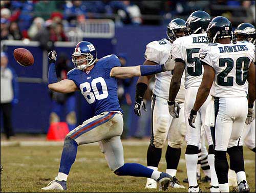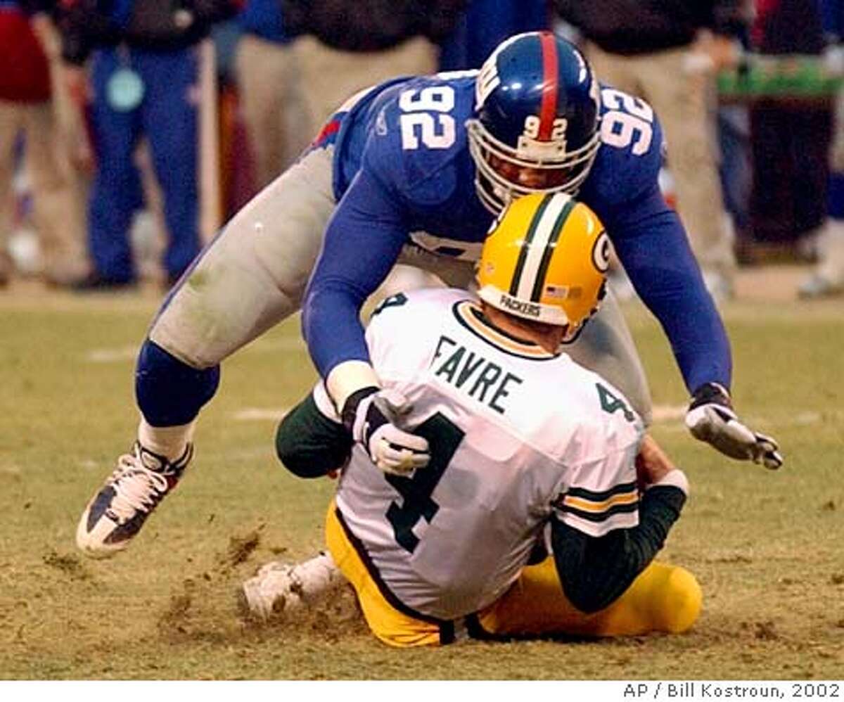 Defensive End Michael Strahan Of The New York Giants Breaks The