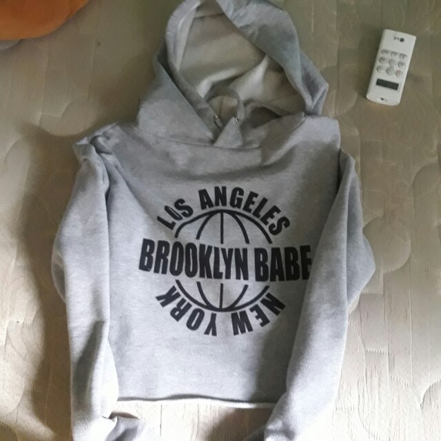 H M Crop Hoodie Los Angeles Brooklyn Babe Newyork Fesyen Wanita id.carousell.com