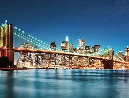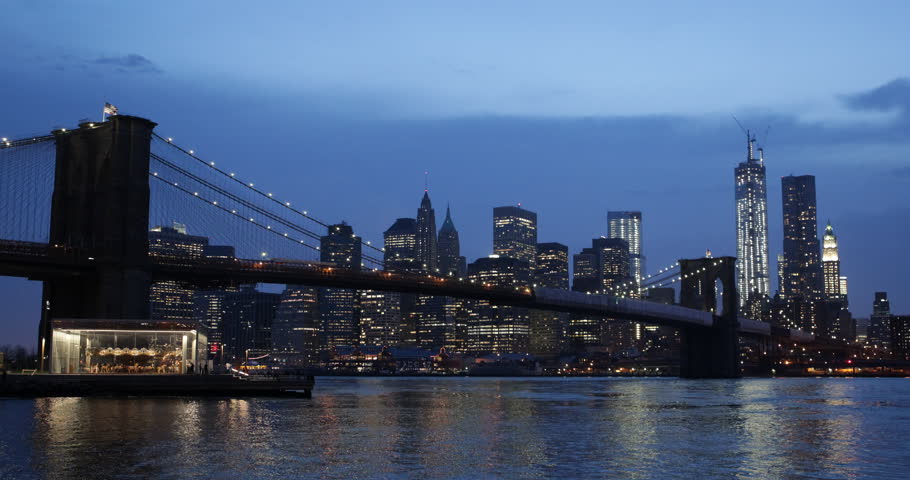 Brooklyn Bridge And Lower Manhattan Skyline Night Panorama Fine