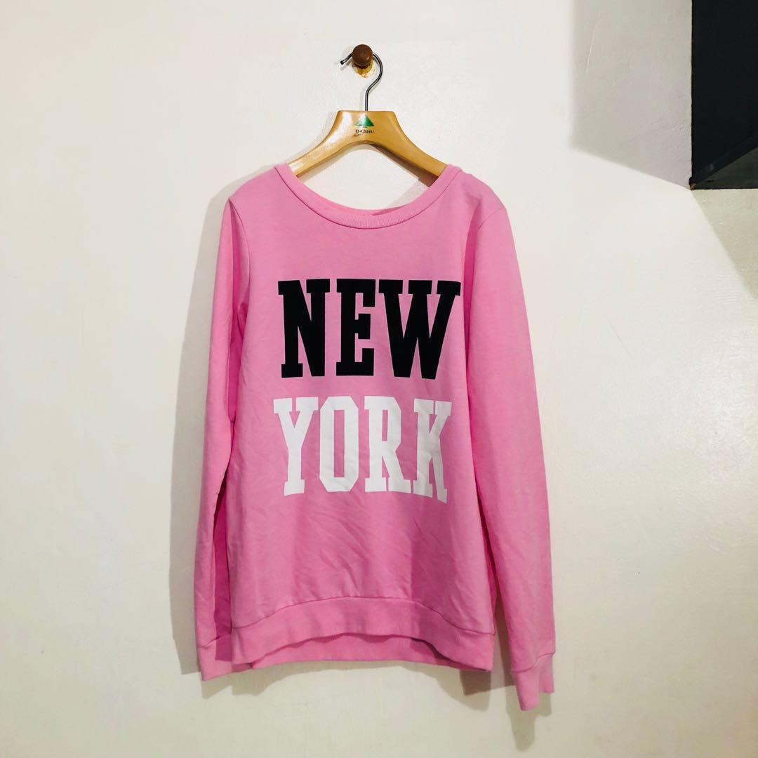 H M Pink New York Sweater Women S Fashion Clothes Tops On Carousell