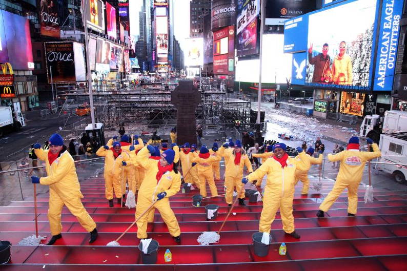 A Person With A Broom And Dust Pan Cleaning Up Garbage Spilled On