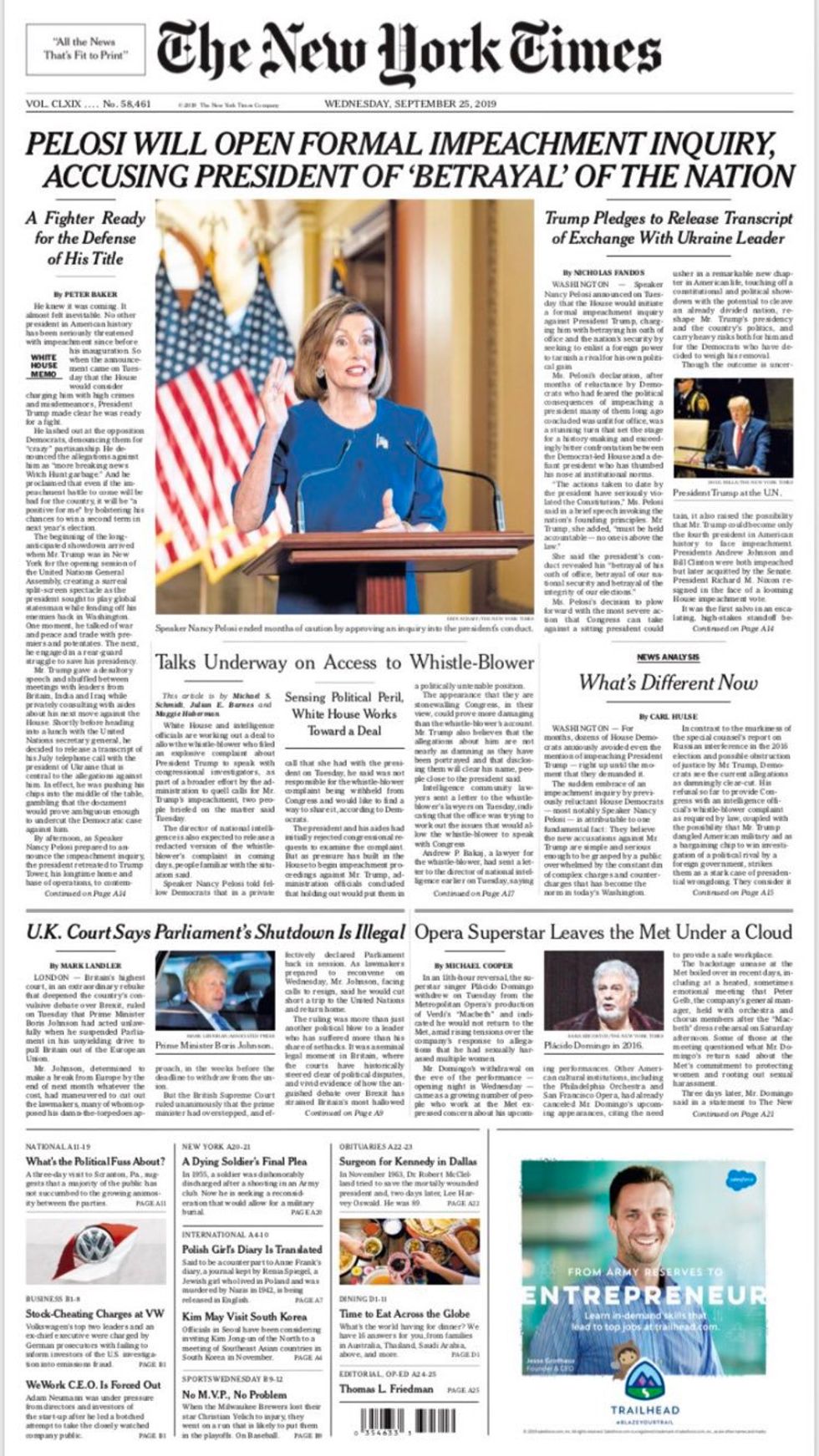An army officer who was a key witness during the impeachment inquiry into president trump last year and later retired after what he. Doug millsthe new york times. On saturday the papers editorial.