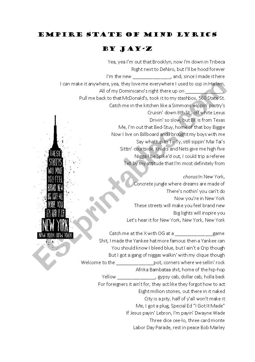 Empire State Of Mind Listening English Esl Worksheets For en.islcollective.com