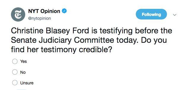 Kavanaugh Hearings New York Times Deleted Twitter Poll Asking If Dr Christine Ford S Testimony Was Credible Indy100