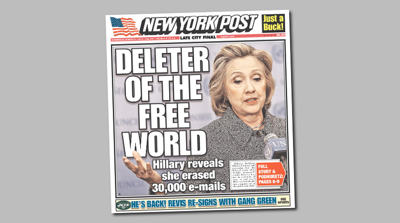 New York Post Mocks Hillary As Deleter Of The Free World Photo