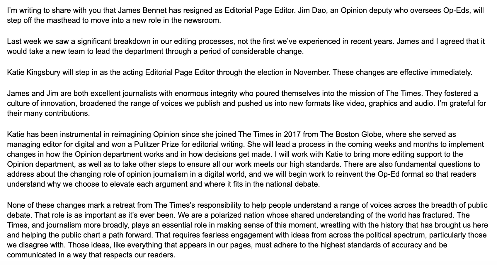 James Bennet New York Times Op Ed Editor Resigns Over Backlash