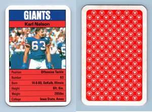 Karl stuart nelsonborn june 14 1960 is a former american footballoffensive tacklewho played professionally in the national football leaguenfl for the new york giants. His father a retired. He also served as a commentator on giants radio broadcasts.
