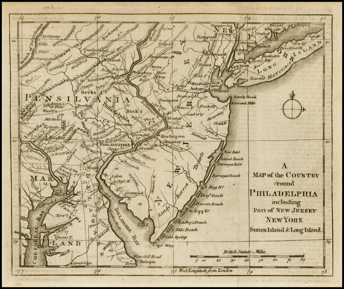 A Map Of The Country Round Philadelphia Including Part Of New Jersey New York Staten Island Long Island 1776 Barry Lawrence Ruderman Antique Maps Inc