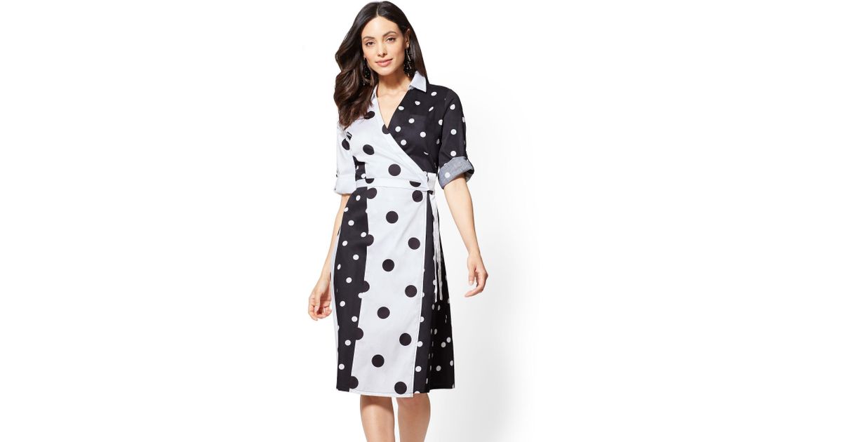 New York Company Cotton Black And White Dot Print Shirtdress Lyst www.lyst.com