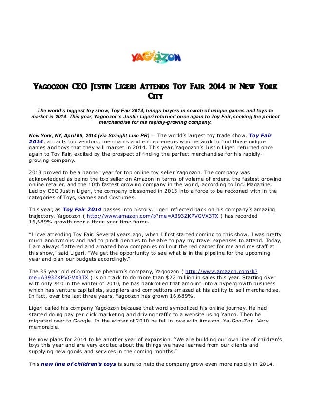 Yagoozon Ceo Justin Ligeri Attends Toy Fair 2014 In New York City