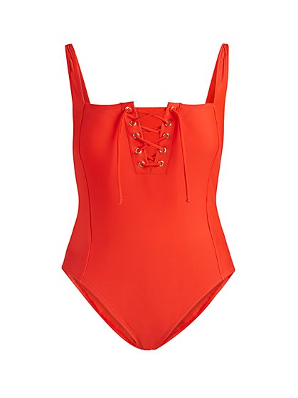 Deandra Lace Up One Piece Swimsuit New York Company Fashion www.pinterest.com