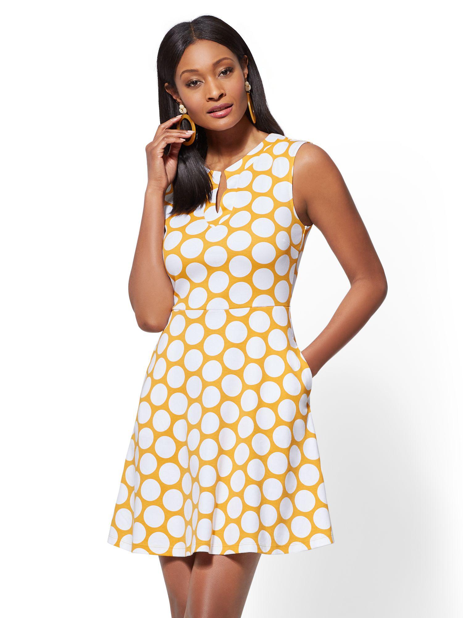 New York Company Gwen Dot Fit And Flare Cotton Dress Lyst www.lyst.com