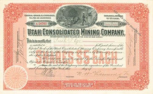 Amazon Com Utah Consolidated Mining Company Stock Certificate www.amazon.com
