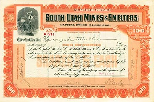 Amazon Com South Utah Mines Smelters Stock Certificate www.amazon.com