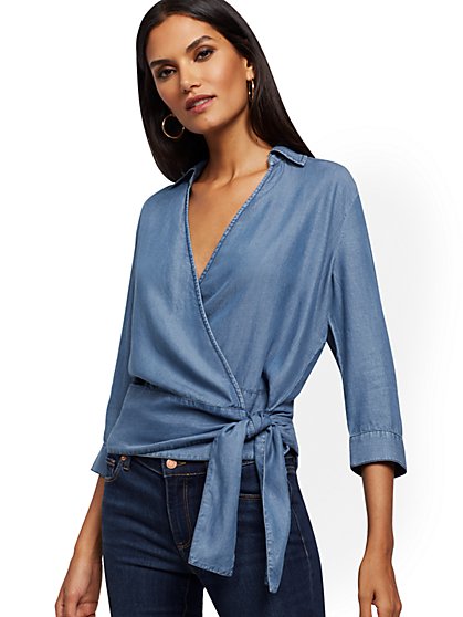 New York Company Zip Front Wrap Top In Black Ny Company Closet