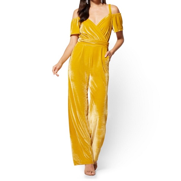 New York Company Pants Jumpsuits Velvet Yellow Jumpsuit poshmark.com