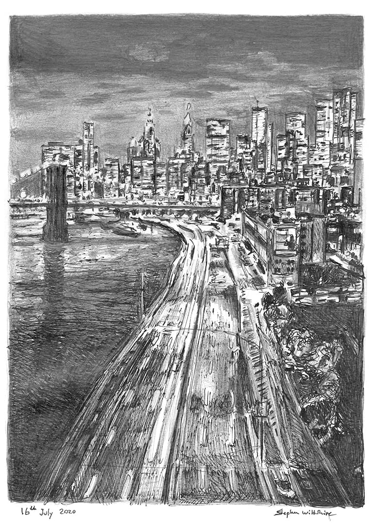 Frame The Artwork Original Drawing Of New York City Freeway At Night