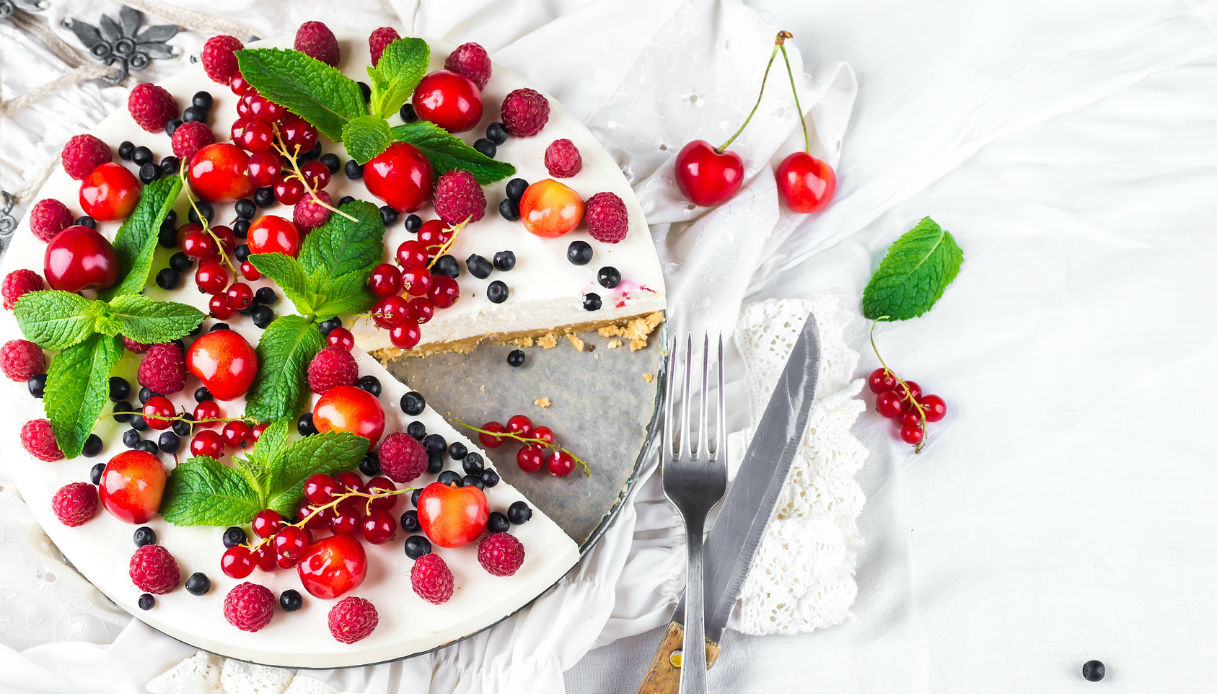 Ricetta New York Cheesecake Con Salsa Alla Banana E Mirtilli www.subitoricette.it