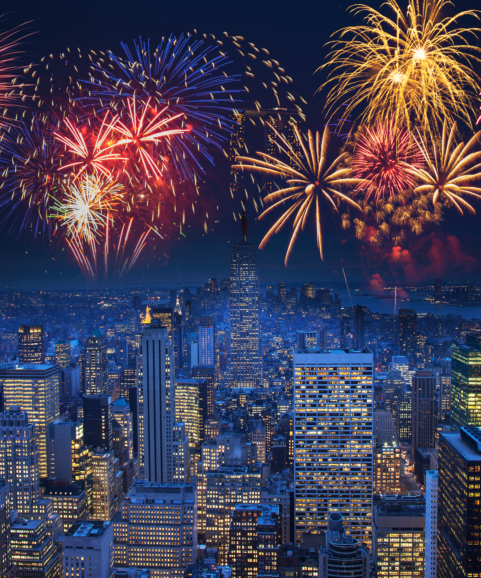 Nyc 4th Of July Fireworks Celebration New York City Skyline With