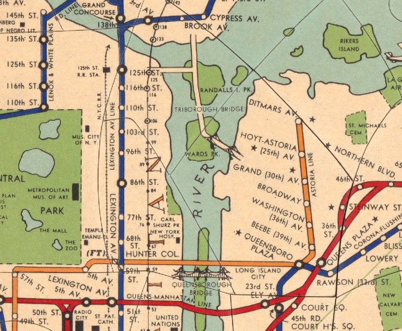 1948 Large New York City Subway Map Mta Manhattan Brooklyn Art Deco Vintage Ebay Nyc Subway Map Map Of New York Ny Subway