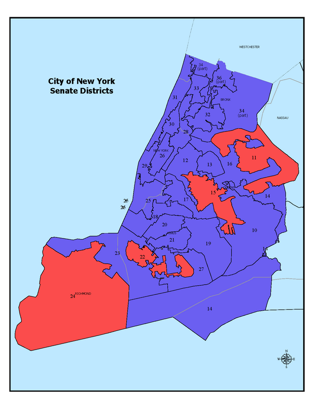 New York State Senate Districts With Less Than 10 Party Registration Differential