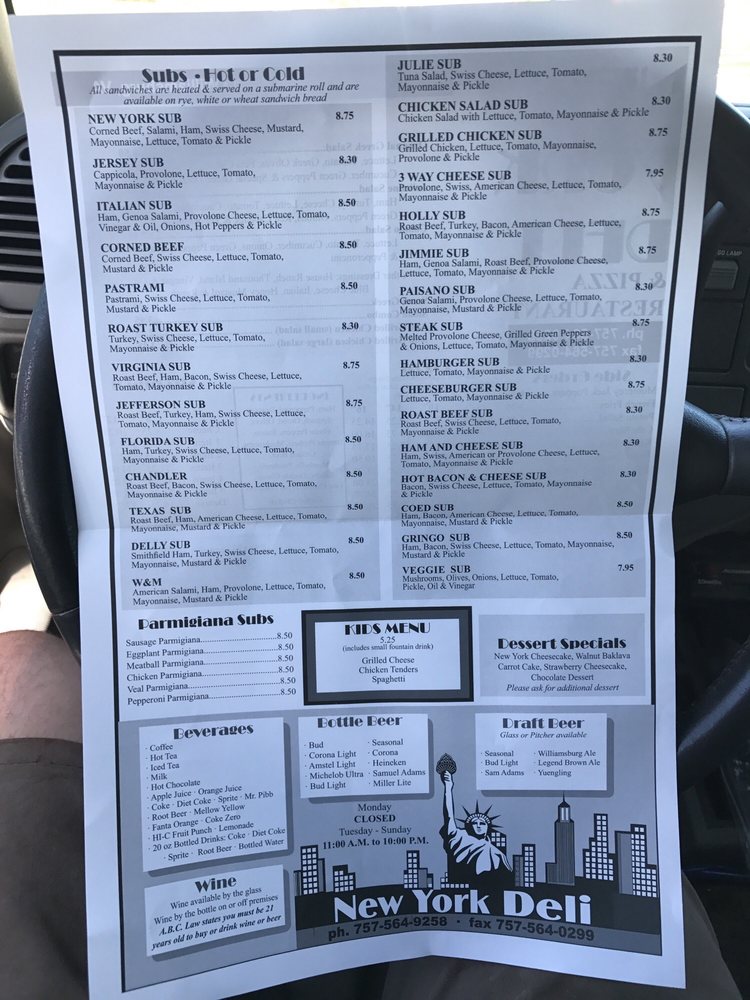Online Menu Of New York Deli Pizza Restaurant Restaurant Williamsburg Virginia 23188 Zmenu