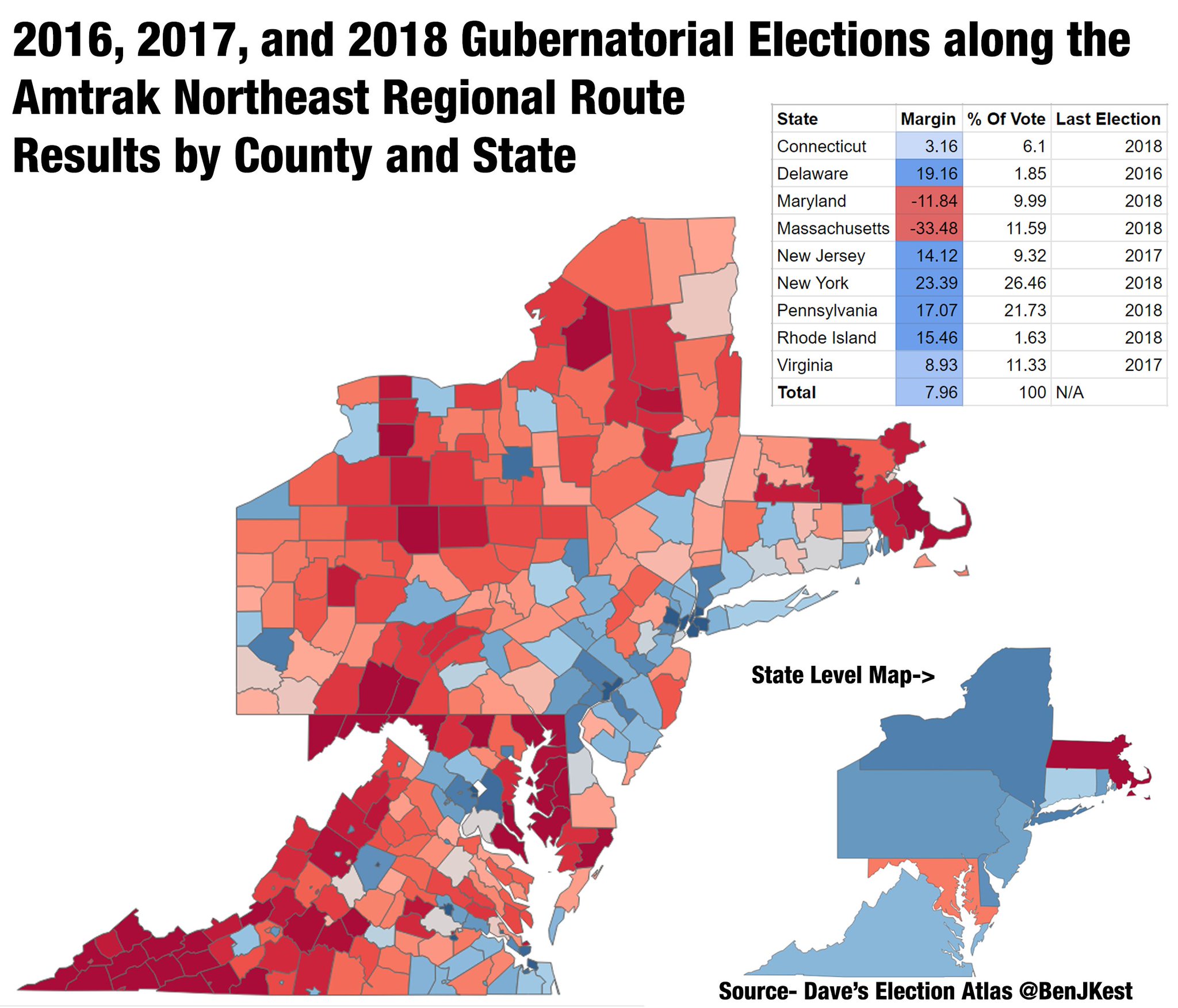 Ben Kestenbaum On Twitter 2016 2017 And 2018 Gubernatorial Election Results By County And State Along The Amtrak Northeast Regional Route I Take The Train A