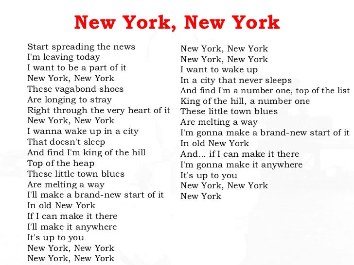 Song Lyrics With Guitar Chords For New York New York Frank