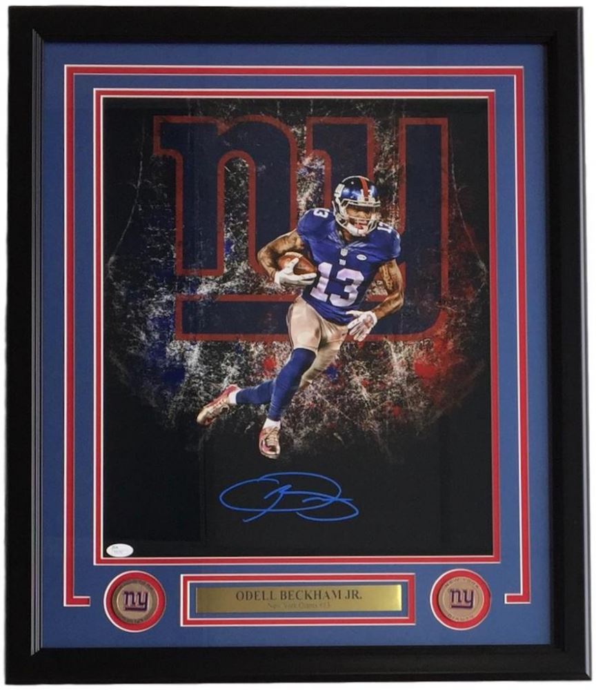 Odell Beckham Jr Signed New York Giants 22x27 Custom Framed Photo Display Jsa Coa