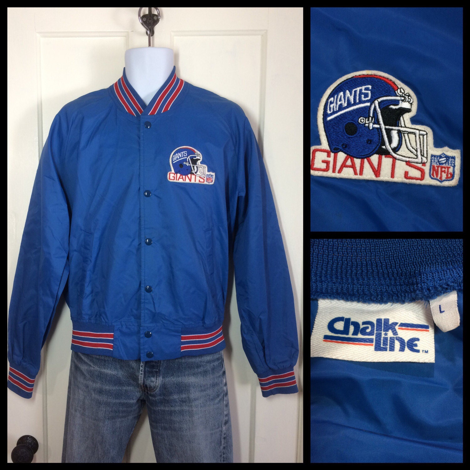 Nfl New York Giants Football Faux Leather Bomber Jacket Xlarge Xl
