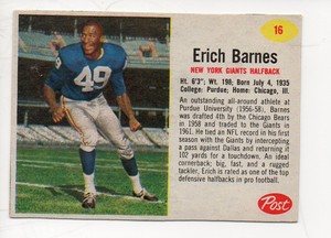 1962 Post Football Card 16 Erich Barnes New York Giants Ebay www.ebay.com