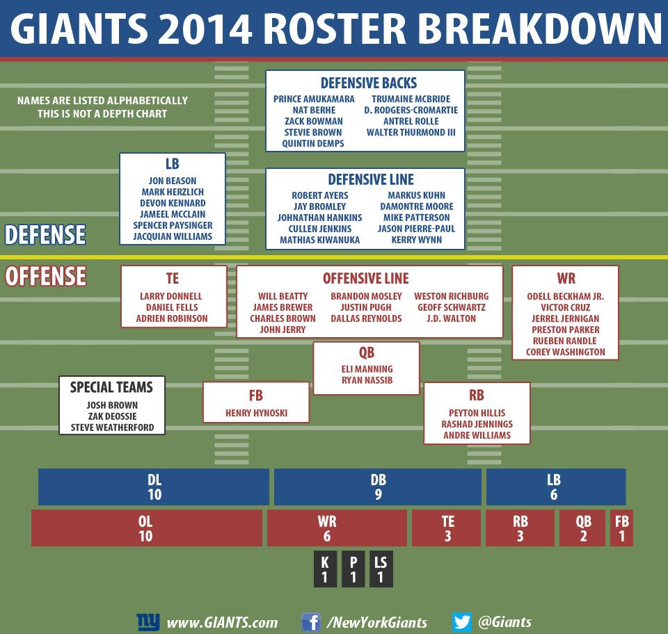 New york giants roster for the 2014 nfl season. Every qb rb wr etc. 2014 new york giants starters roster players.