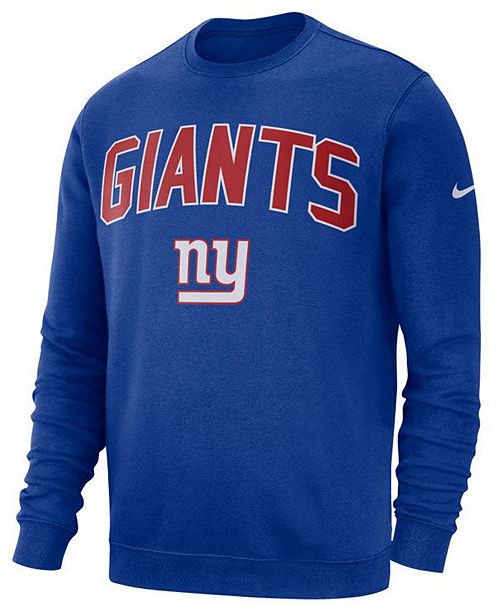 The official new york giants store has the biggest selection of giants sweatshirts for all big blue fans. Rely on our selection of new york giants sweatshirts including a full assortment of new york giants hoodies and more. Men women and kids can all score a giants sweatshirt from nike in a variety of styles like crew sweatshirts zip up pullover and half zip hoodies.