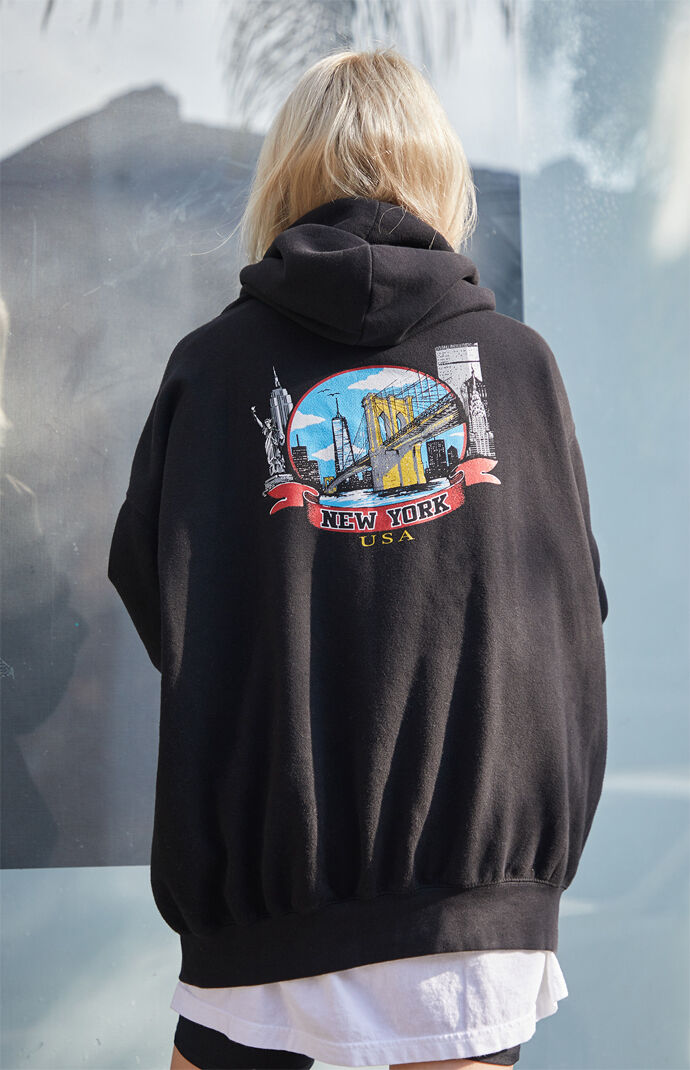 Grey New York Slogan Hoodie Tops Prettylittlething Usa