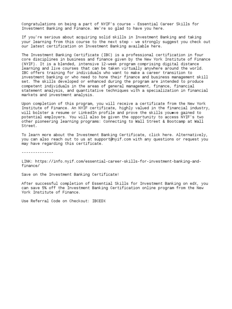 Ibc Investment Banking Certificate www.scribd.com