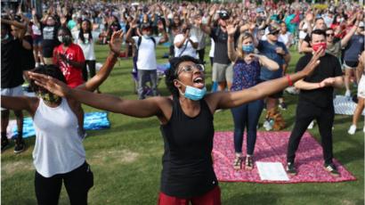New York Ny June 19 2020 A Woman Participates In Juneteenth Celebration At Brooklyn Public Library At The Grand Army Plaza Stock Photo Alamy